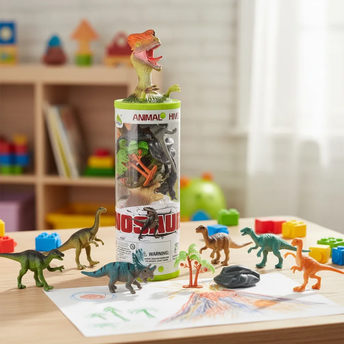 12 Dinosaurios Mini En Tubo Con Accesorios