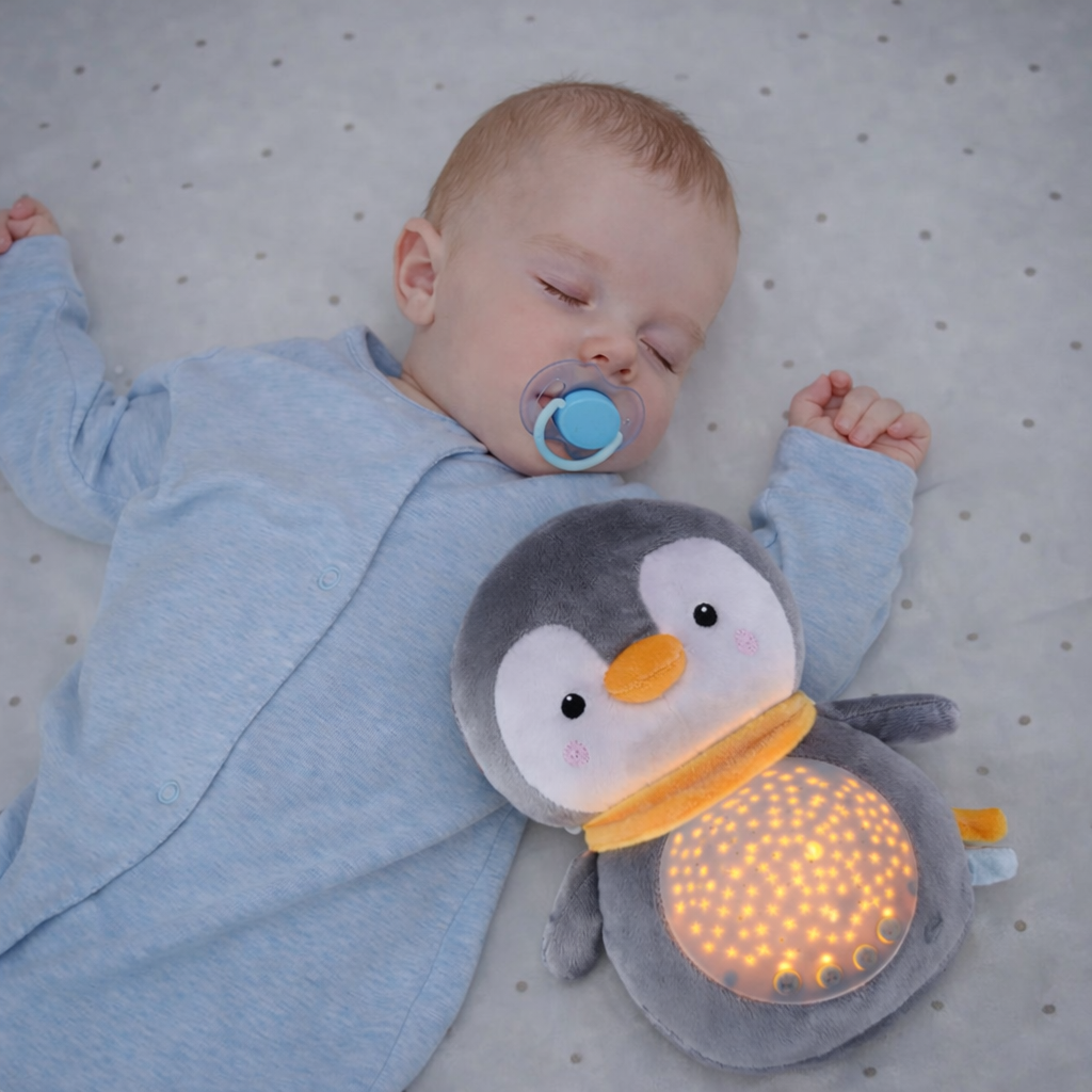 Suave peluche con luz y sonidos relajantes que ayudan a tu bebé a dormir mejor.