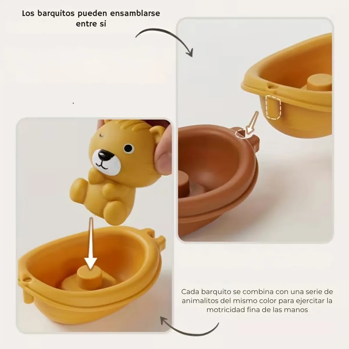 Convertí el baño en un momento divertido con este set flotante. Incluye animalitos de silicona suave y barquitos de plástico rígido, todos libres de BPA. No acumulan agua ni moho.
