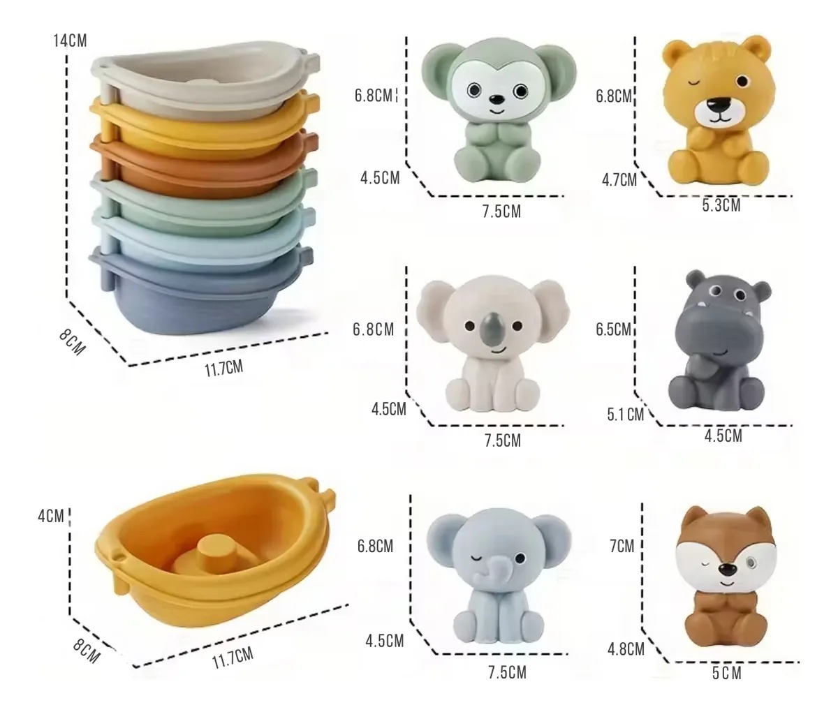 Material: animales de silicona / barquitos de plástico rígido