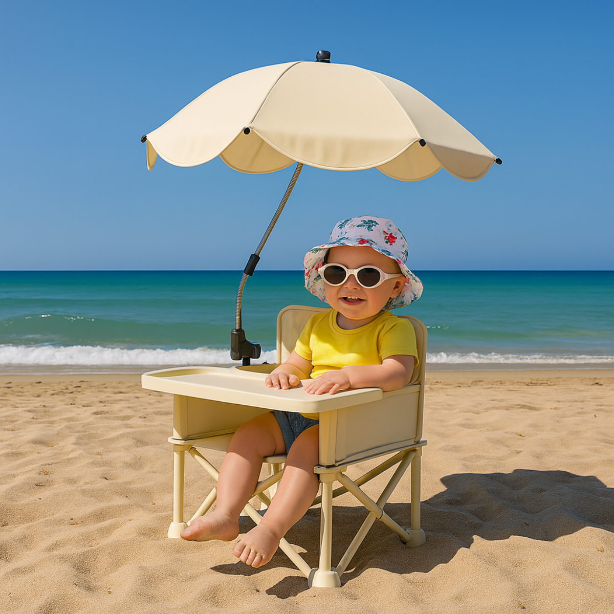 SILLA PLEGABLE CON BANDEJA Y SOMBRILLA Desmontable- BEIGE -