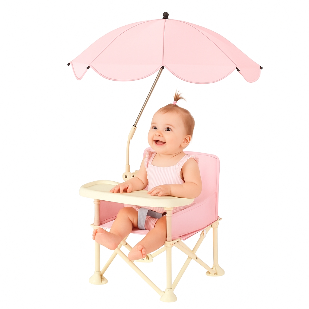 SILLA PLEGABLE CON BANDEJA Y SOMBRILLA Desmontable- ROSA
